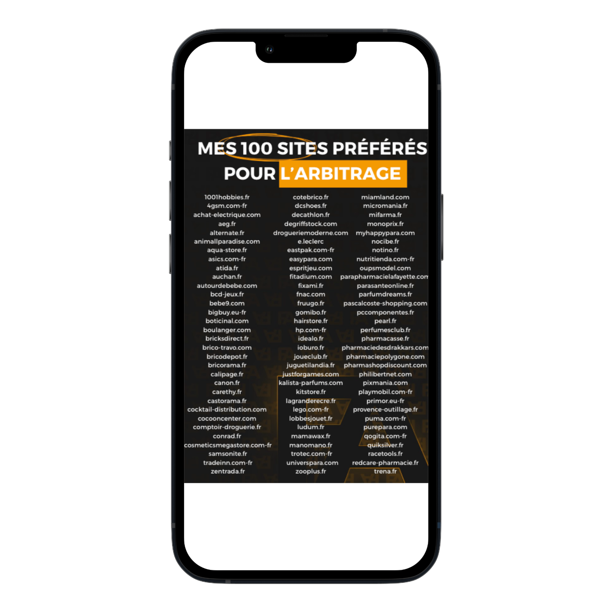 🔎 Des opportunités déjà validées : Tous les sites listés sont connus pour proposer régulièrement des promotions, déstockages ou prix bas exploitables pour l’arbitrage.